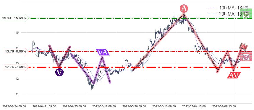 ♘ 阻力价格位15.93,可信任强度56.47%,距离最后交易2022-08-12 14:00形成的收盘价格13.77相差 +15.68%