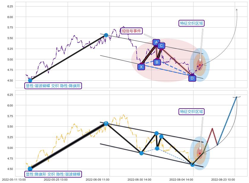 ➣ 已完成【蝴蝶】形态起点X: 06-22:14, 终点D: 08-04:13, 共62交易小时