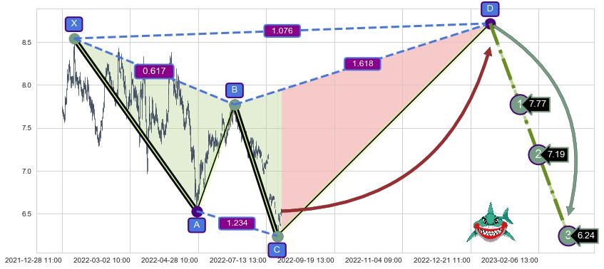 ➣ D点拟合预测价格8.72,距离最后交易收盘价格6.53相差 +33.47%