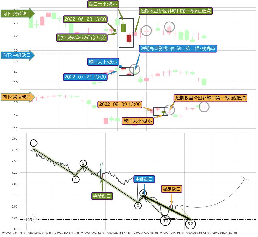 ➢ 2022-08-09 13:00形成:向下跳空【竭尽】缺口