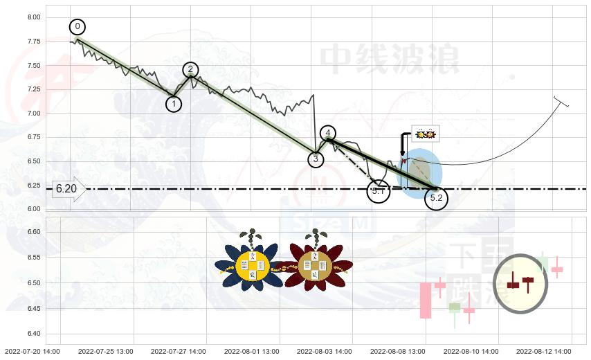 ➣ 5.1: 预测当前第5浪位置(08-04:13, 6.24),仍然有下跌空间