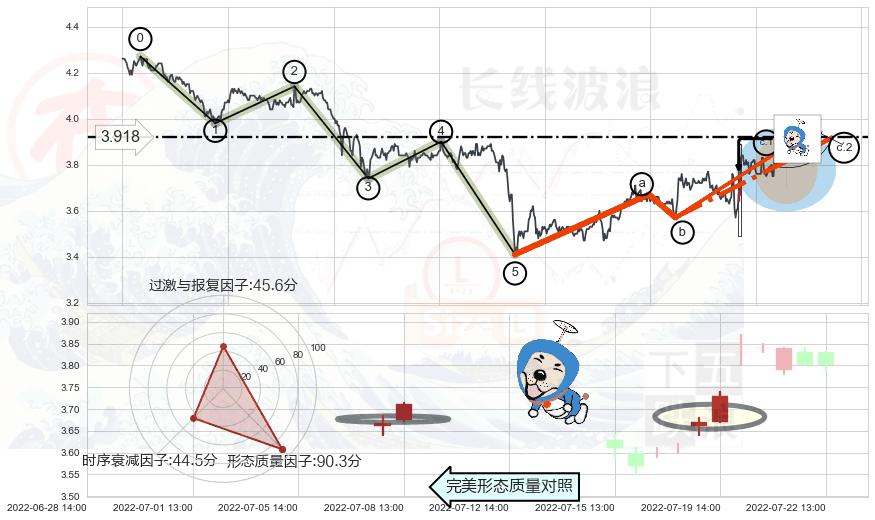 ➢ 🕰 价格走势在2022-07-29 00:00:00至2022-08-04 00:00:00期间形成高档五阴线,残存影响值:-3.87