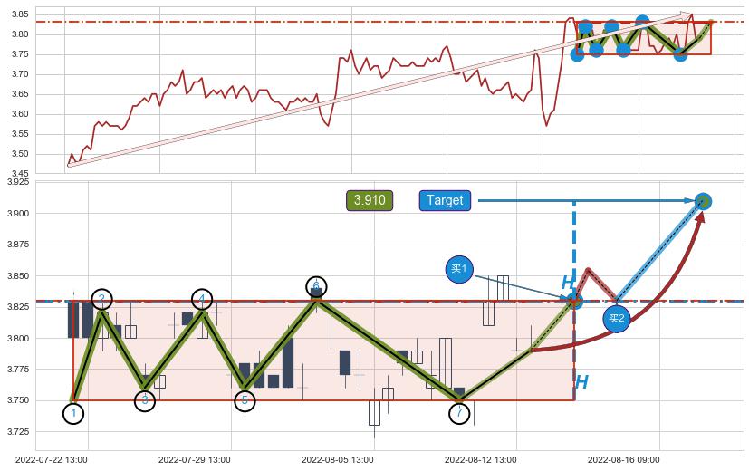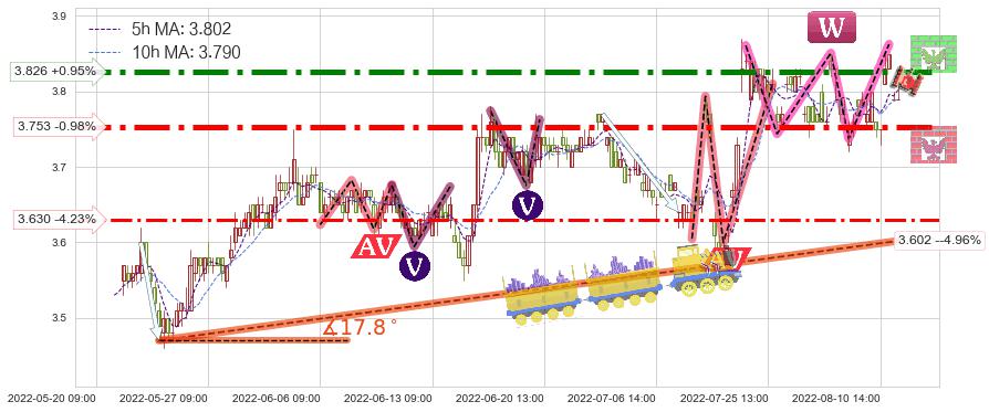 ➢ 【仅预测突破】最后价格:3.790与预测突破价格:3.830→【空间临近】后续最小【整理】第一目标价格→(08-16:12: 3.910 )