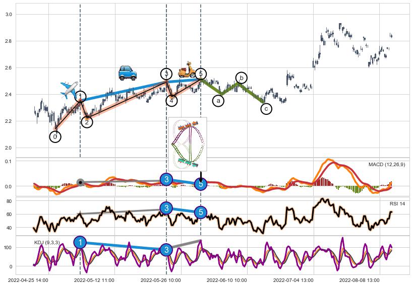 ➣ 波浪理论:猜想击穿突破c点后继续上涨 → 上涨 → 机会信号 → 小趋势跟踪