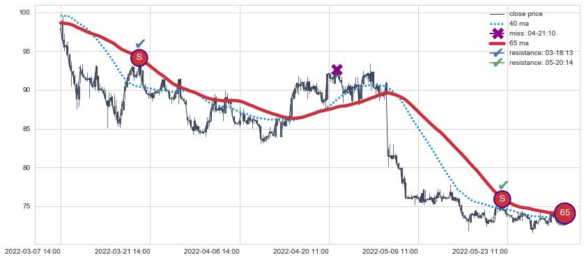 ➢ 65小时均线于(07-20 14:00: 84.68)形成【死叉】基于【死叉历史模型】预测死叉后最低波谷价格: 81.93, 死叉后最低价格78.03,已经下跌超出预测最低波谷价格, 预期反弹