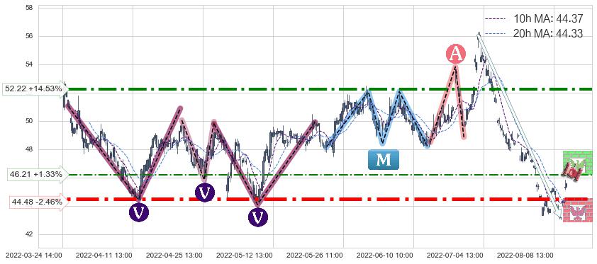 ♘ 阻力价格位46.21,可信任强度38.11%,距离最后交易2022-08-12 14:00形成的收盘价格45.60相差 +1.33%