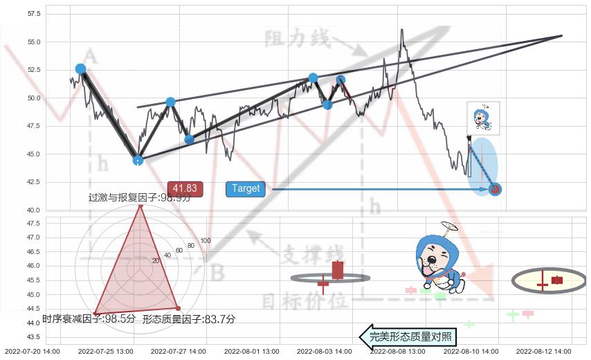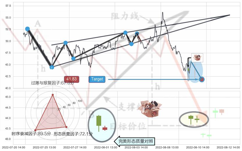 ♘ 阻力价格位52.22,可信任强度76.00%,距离最后交易2022-08-12 14:00形成的收盘价格45.60相差 +14.53%