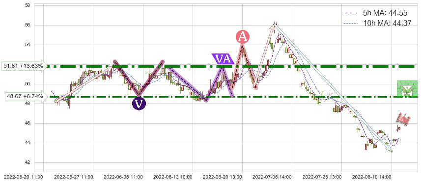 ♘ 阻力价格位48.67,可信任强度60.58%,距离最后交易2022-08-12 14:00形成的收盘价格45.60相差 +6.74%