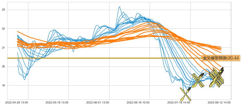 ➣ 21小时均线于(08-10 14:00: 19.44)形成【金叉】基于【金叉历史模型】预测金叉后最高波峰价格: 20.46, 金叉后最高价格19.86,尚未达到预测最高波峰价格, 预期继续上涨