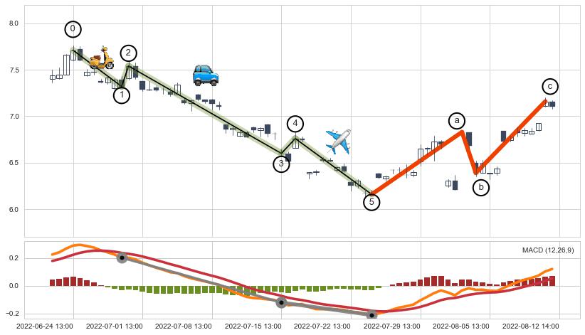 ➣ 波浪理论:猜想达到c点后小回调终止反转上涨 → 上涨 → 【拐点】临近 → 阶段均值回复结束后继续大周期趋势跟踪