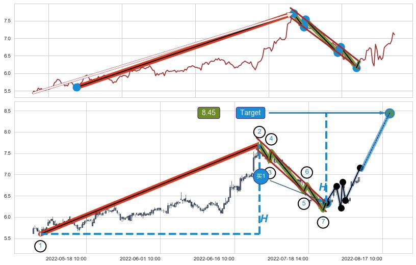 ➣ 最小中继整理涨幅→𝐇: 2.110 (𝐇旗杆的长度:旗杆起点→顶点)