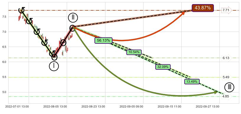 ➢ 循环浪继续向下【最低】位置(09-29:13, 4.85),匹配聚类样本比例24.03%, 可能性概率13.49%