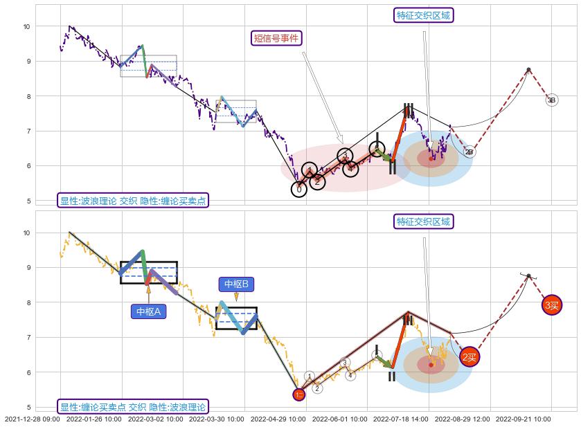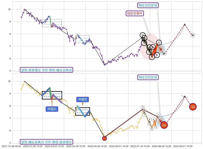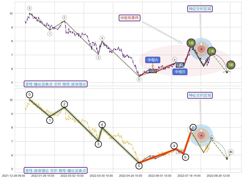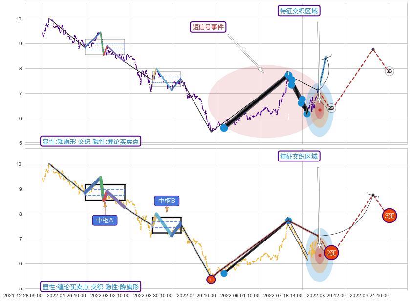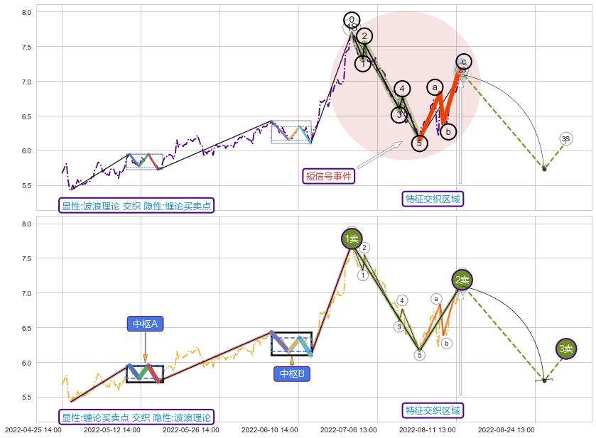 ➣ 缠论买卖点:猜想2卖持续蓄力下跌至3卖 → 下跌 → 风险信号 → 小趋势跟踪