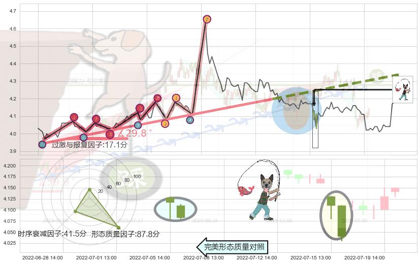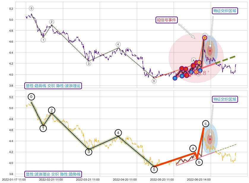 ➣ 2022-05-24 14:00-2022-07-01 14:00上升趋势存在反转[风险],其原上升趋势的支撑位(4.34)已破位[强阻力信号],原上升趋势角度: 29.8˚