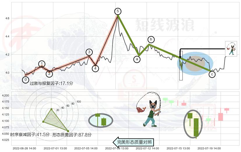 ➢ 🕰 价格走势在2022-07-15 13:00:00至2022-07-15 13:00:00期间形成单针探底(定海神针),残存影响值:3.48