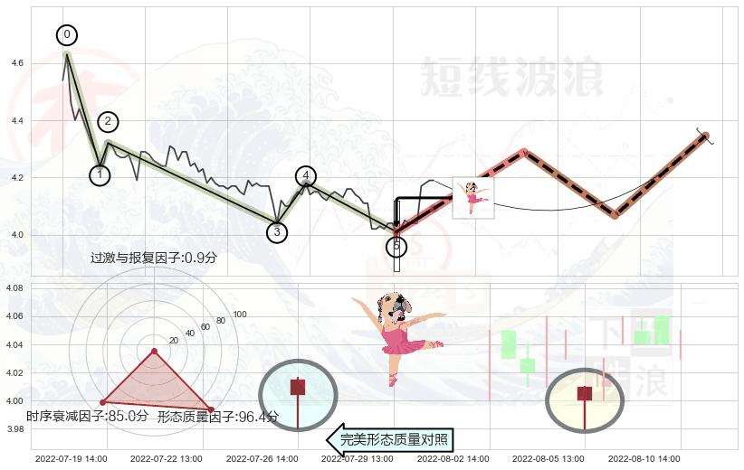 从2022-07-15 14:00至2022-08-12 14:00,共包含39个小时,阶段股价上涨3.77%,阶段股价变动位移路程比: 1 : 4