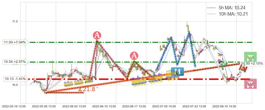 ♞ 5小时均线:10.24,10小时均线:10.21→ 快线>慢线