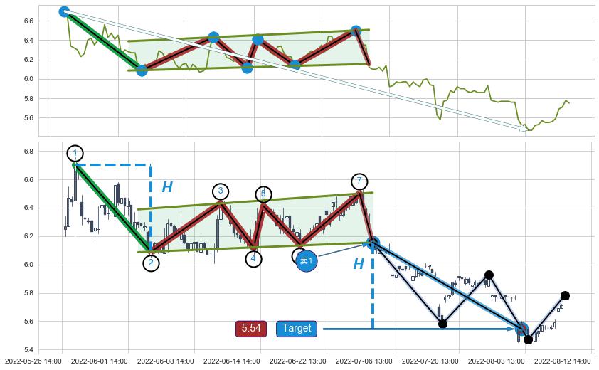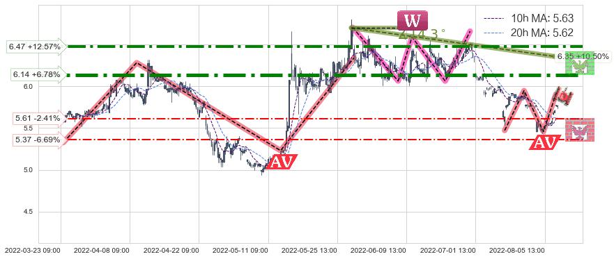 ♘ 阻力价格位6.14,可信任强度90.06%,距离最后交易2022-08-12 14:00形成的收盘价格5.75相差 +6.78%