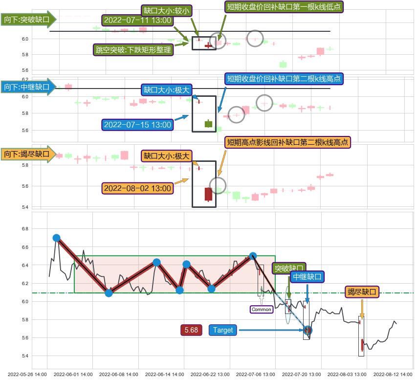 ➢ 2022-08-02 13:00形成:向下跳空【竭尽】缺口