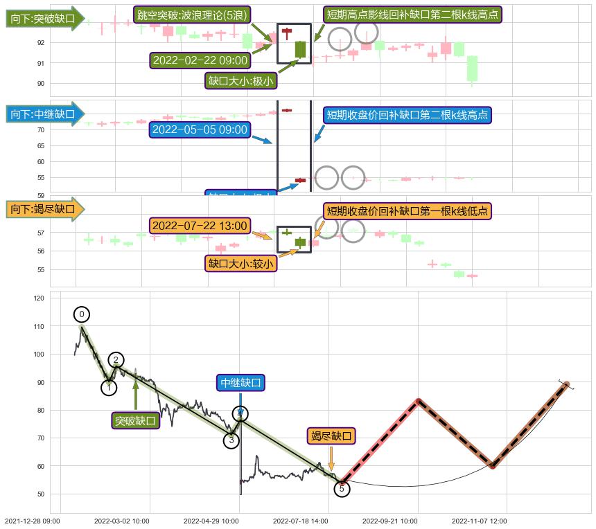 ➢ 2022-07-22 13:00形成:向下跳空【竭尽】缺口