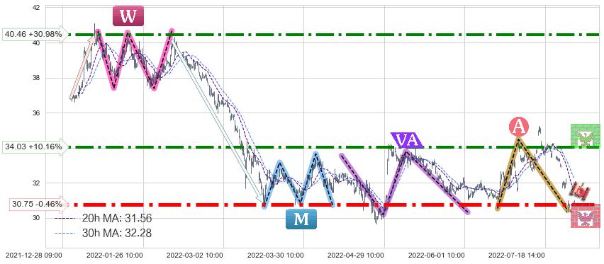 ♞ 20小时均线:31.56,30小时均线:32.28→ 快线<慢线