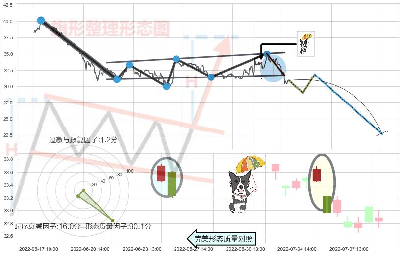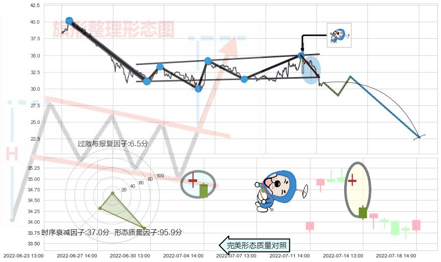➢ 射击之星形态 🔜 升旗形支撑破位转换阻力下跌 综合量化分数:35.73 【强烈看空】