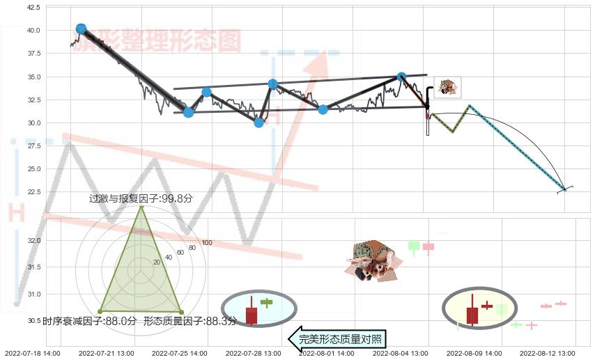 ➢ 🕰 价格走势在2022-08-05 14:00:00至2022-08-09 13:00:00期间形成顶部尽头线(下山虎),残存影响值:-8.20