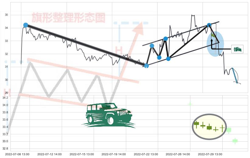 ➢ 【卖1】: 激进型 卖点→(08-02:13: 32.87 )形成突破升⚑旗形【整理】形态