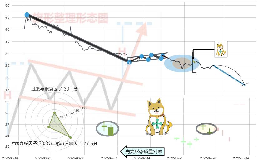 ➢ 下跌螺旋桨 🔜 升旗形支撑破位转换阻力下跌 综合量化分数:44.62 【偏空】