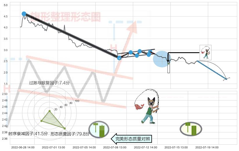 从2022-04-15 09:00至2022-07-21 14:00,共包含257个小时,阶段股价下跌-70.50%,阶段股价变动位移路程比: 1 : 4,下跌趋势角度: 46.5