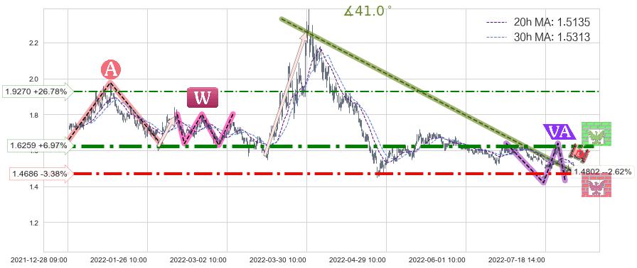 ♘ 阻力价格位1.9270,可信任强度48.31%,距离最后交易2022-08-12 14:00形成的收盘价格1.5200相差 +26.78%