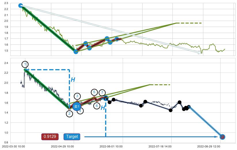 ➣ 07-28:14到达第❷价格目标位置1.6100