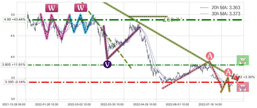 ♞ 20小时均线:3.363,30小时均线:3.373→ 快线<慢线