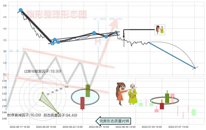 ➢ 下跌螺旋桨 🔜 升旗形支撑破位转换阻力下跌 综合量化分数:49.19 【中性】
