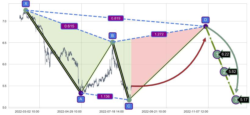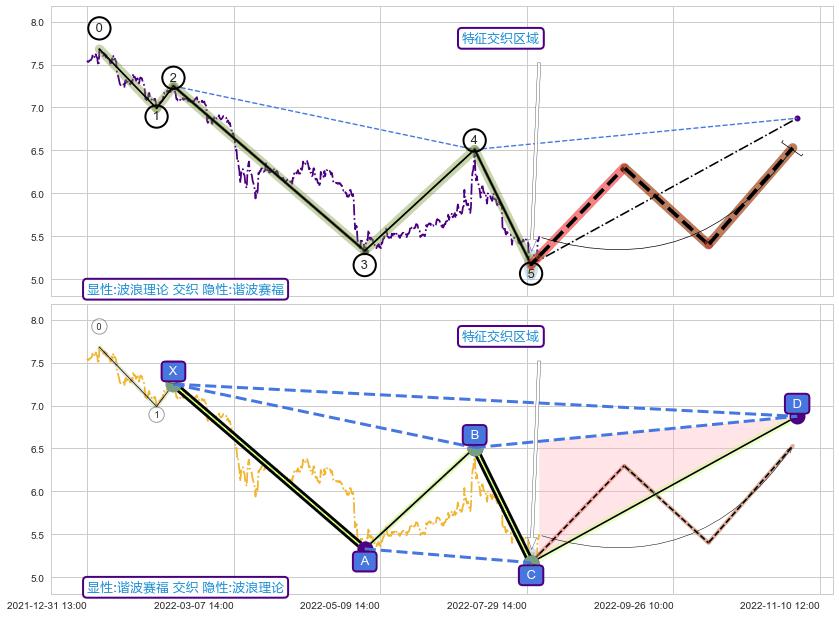 ➣ D点拟合预测价格6.87,距离最后交易收盘价格5.49相差 +25.22%
