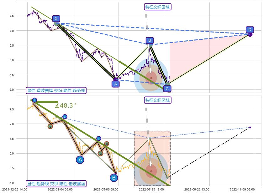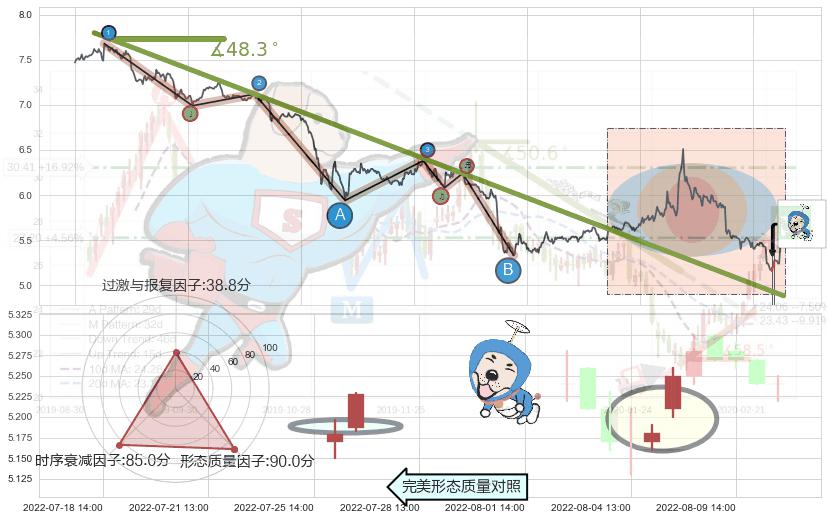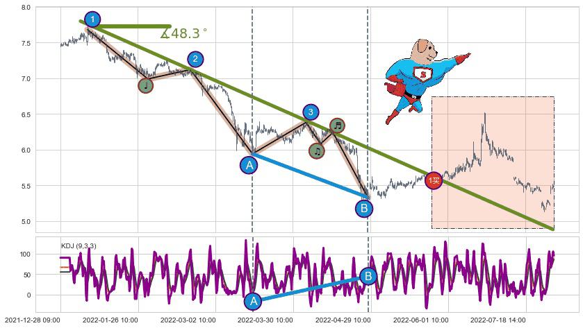 ➢ 2022-01-05 10:00-2022-05-06 13:00下跌趋势存在反转上涨[机会],其原下跌趋势的阻力位(4.88)已被突破[强支撑信号],原下跌趋势角度: 48.3˚