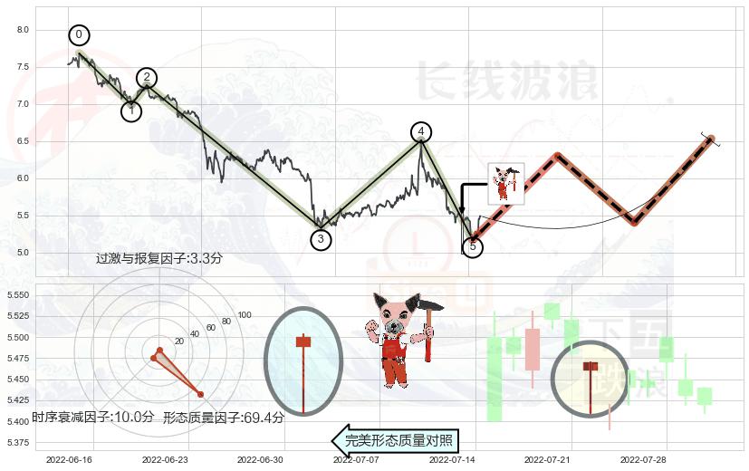 ➢ 锤头线(锤子线) 🔜 波浪理论下跌浪:浪5反弹拐点 综合量化分数:54.00 【偏多】