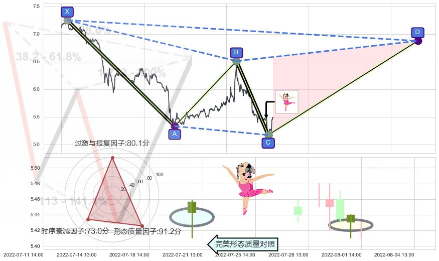 ➣ BC回撤位置在AB的113.6%,符合形态要求