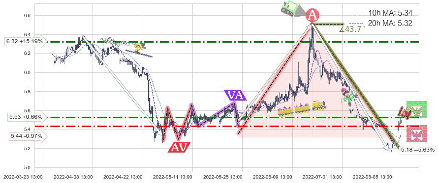 ♘ 阻力价格位5.53,可信任强度67.56%,距离最后交易2022-08-12 14:00形成的收盘价格5.49相差 +0.66%