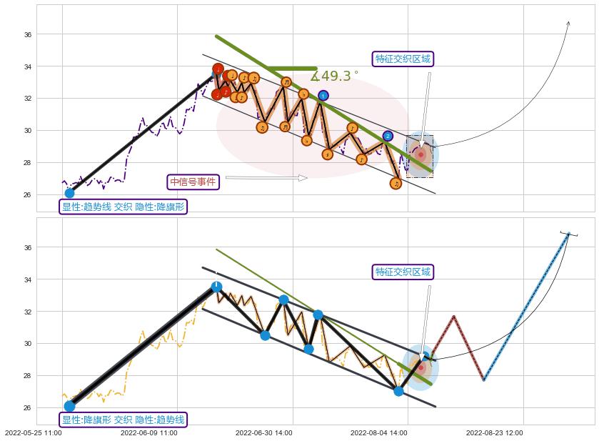 ➢ 趋势线属【中级别信号事件】降旗形属【长级别信号事件】中长周期组合信号事件,中长事件长度比53.16%