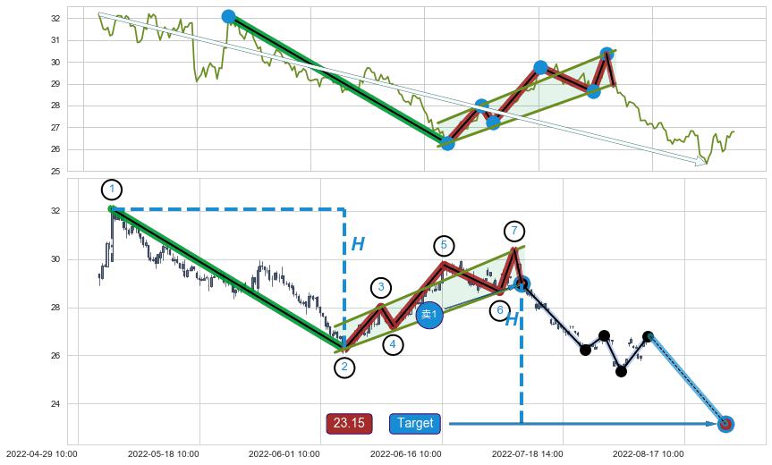 ➣ 最小中继整理跌幅→𝐇: 5.82 (𝐇旗杆的长度:旗杆起点→顶点)