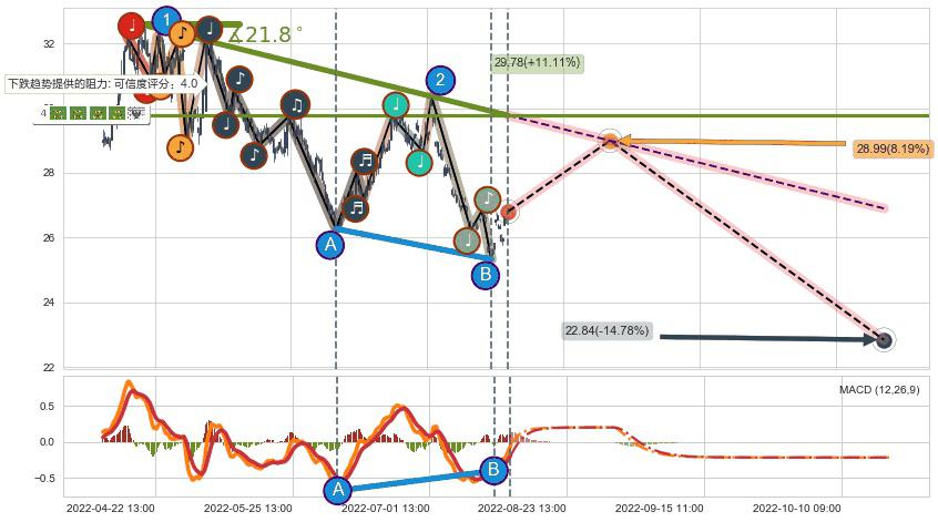 ♘ 阻力价格位29.25,可信任强度52.03%,距离最后交易2022-08-12 14:00形成的收盘价格26.80相差 +9.13%