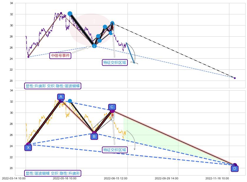 ➢ 升旗形属【中级别信号事件】谐波蝴蝶属【长级别信号事件】中长周期组合信号事件,中长事件长度比43.93%