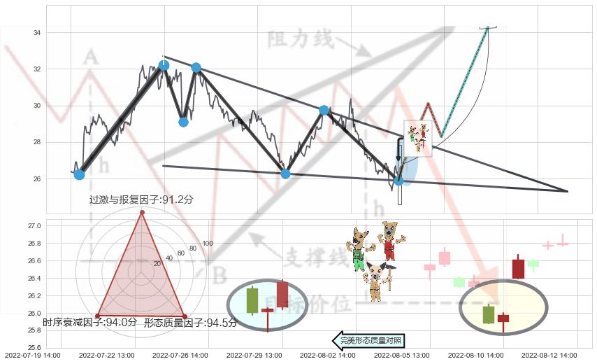 ➢ 🕰 价格走势在2022-08-01 14:00:00至2022-08-01 14:00:00期间形成锤头线(锤子线),残存影响值:7.52