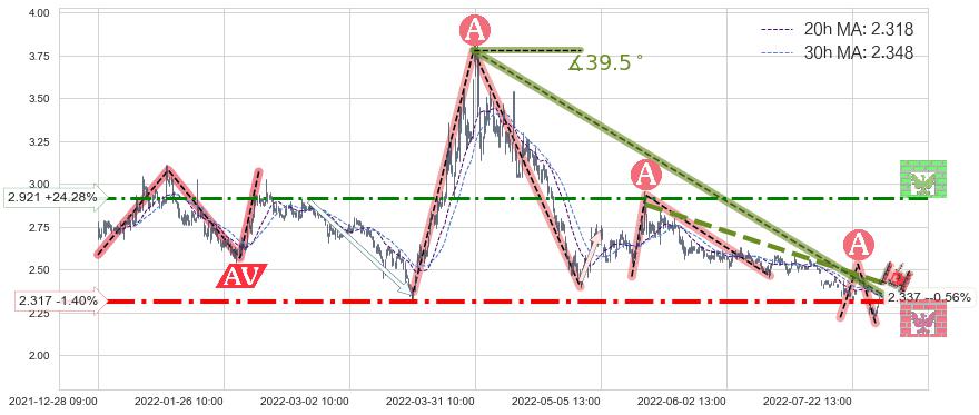 ♘ 支撑价格位2.317,可信任强度84.45%,距离最后交易2022-08-12 14:00形成的收盘价格2.350相差 -1.40%