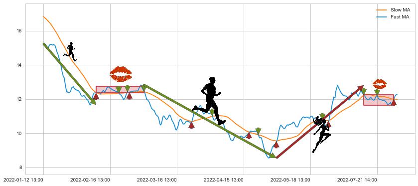 01-12 13:00至02-10 11:00 慢线与快线呈空头排列, 慢线与快线接触少,无缠绕