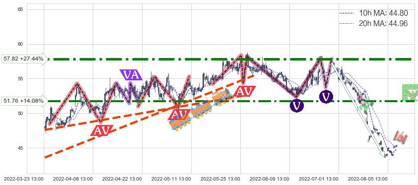 ♘ 阻力价格位51.76,可信任强度81.95%,距离最后交易2022-08-12 14:00形成的收盘价格45.37相差 +14.08%