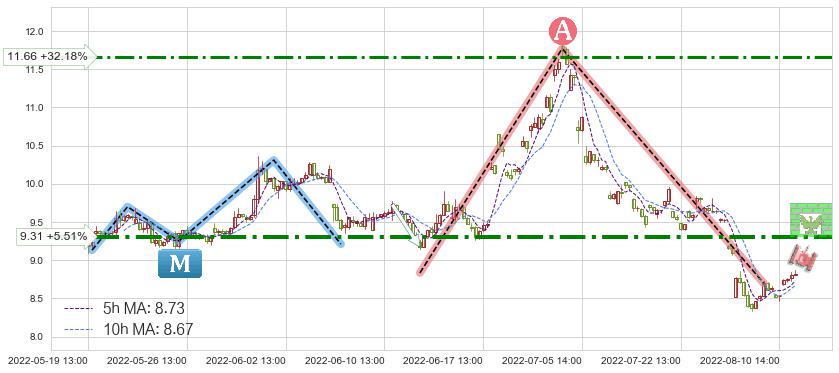 ♘ 阻力价格位9.31,可信任强度80.88%,距离最后交易2022-08-12 14:00形成的收盘价格8.82相差 +5.51%