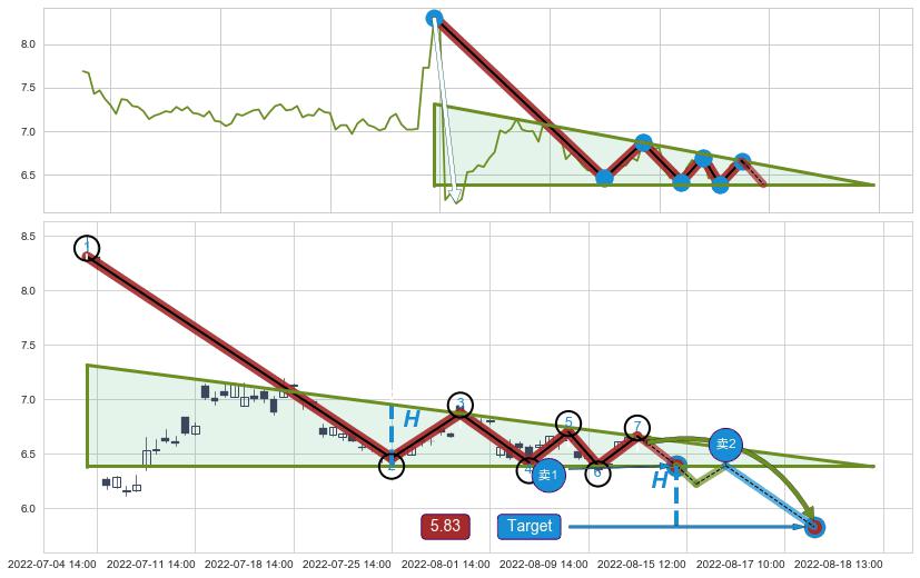 ➣ AI预测: 假定反转启动后, 第❶目标位置(08-23:11, 6.77)
