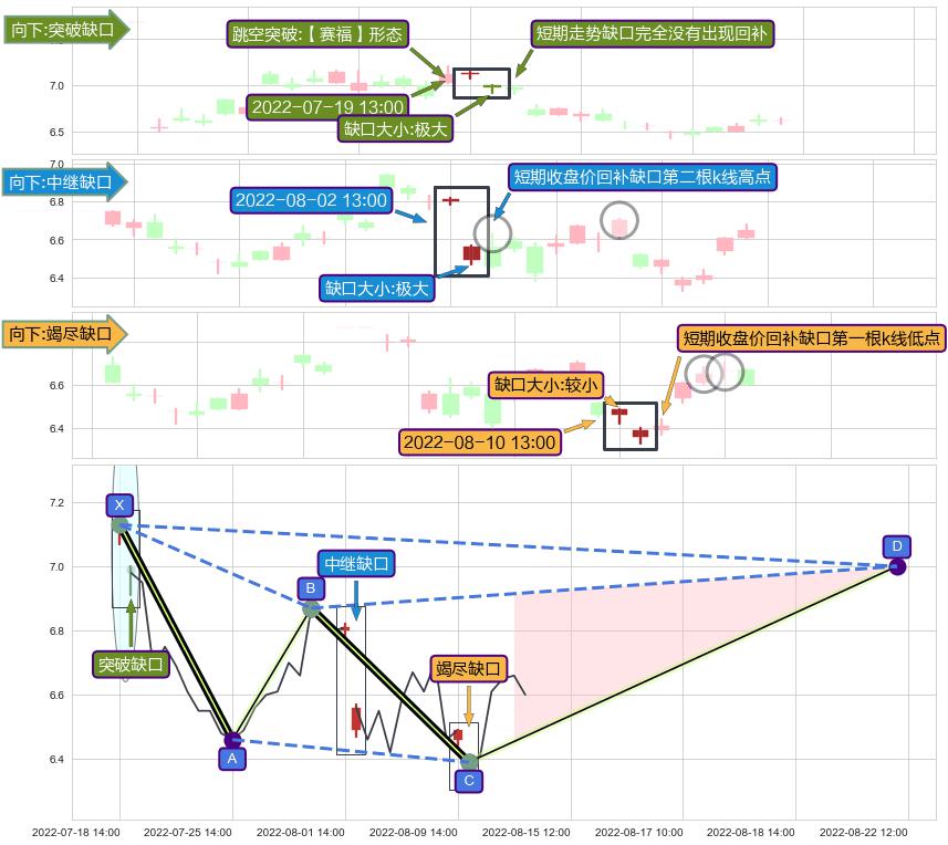 ➢ 2022-08-10 13:00形成:向下跳空【竭尽】缺口